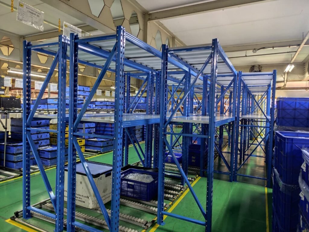 Digunakan untuk menyimpan komponen kecil seperti baut, mur, sekring, atau aksesoris kendaraan. Dengan desain yang fleksibel, rak ini memudahkan staf gudang untuk mengakses barang secara manual. - Rak Medium Duty