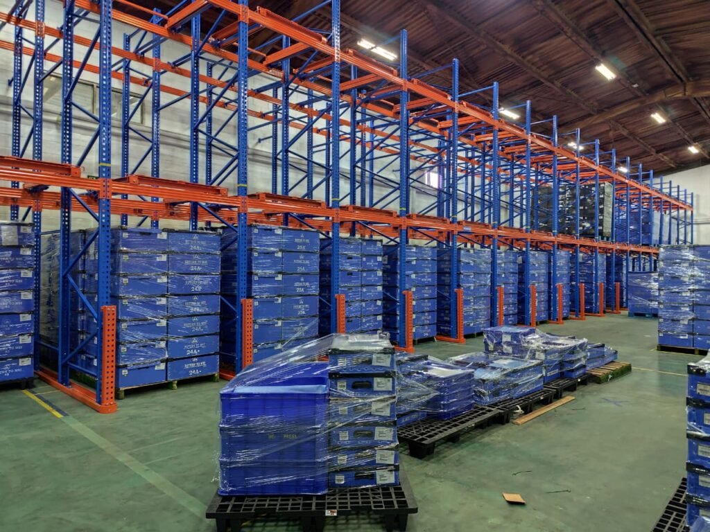 Selain itu, gudang distribusi plat logam juga memanfaatkan rak industri tipe cantilever untuk menjaga material tetap aman dari risiko kerusakan maupun kecelakaan kerja. Hasilnya, proses kerja menjadi lebih cepat dan terorganisir.
